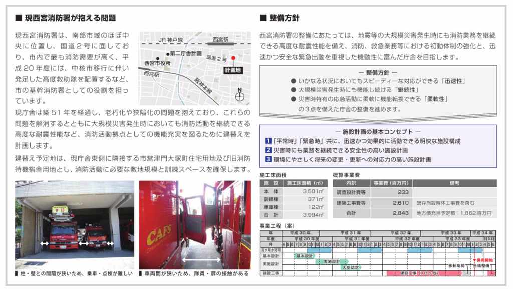 もともとはアサヒビール跡地で移設建替の計画でしたが、アサヒビール跡地の県市統合病院用地以外の用途で土地を購入しなかったため、現消防署の東にある市営住宅跡地に建替える計画となりました。ちなみに跡地の敷地は病院以外は全て民間で用途が決まっています。