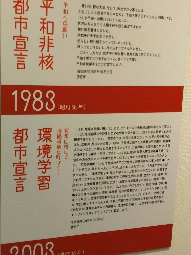 2023-11-08 西宮三都市宣言周年記念 日々の活動 文教住宅都市宣言1963年から60周年平和非核都市宣言1983年から40周年環境学習都市宣言2003年から20周年ということで、11月4日(土)に開催された西宮三都市宣言周年記念の式典に参加しました。石油コンビナート誘致に反対する市民の動きから文教住宅都市宣言がなされて、今の西宮市があります。当時の人々がどのような思いで、西宮市を守り未来につなごうとしいていたのか、その思いにこたえるべく職責を果たそうと決意を新たにしました。